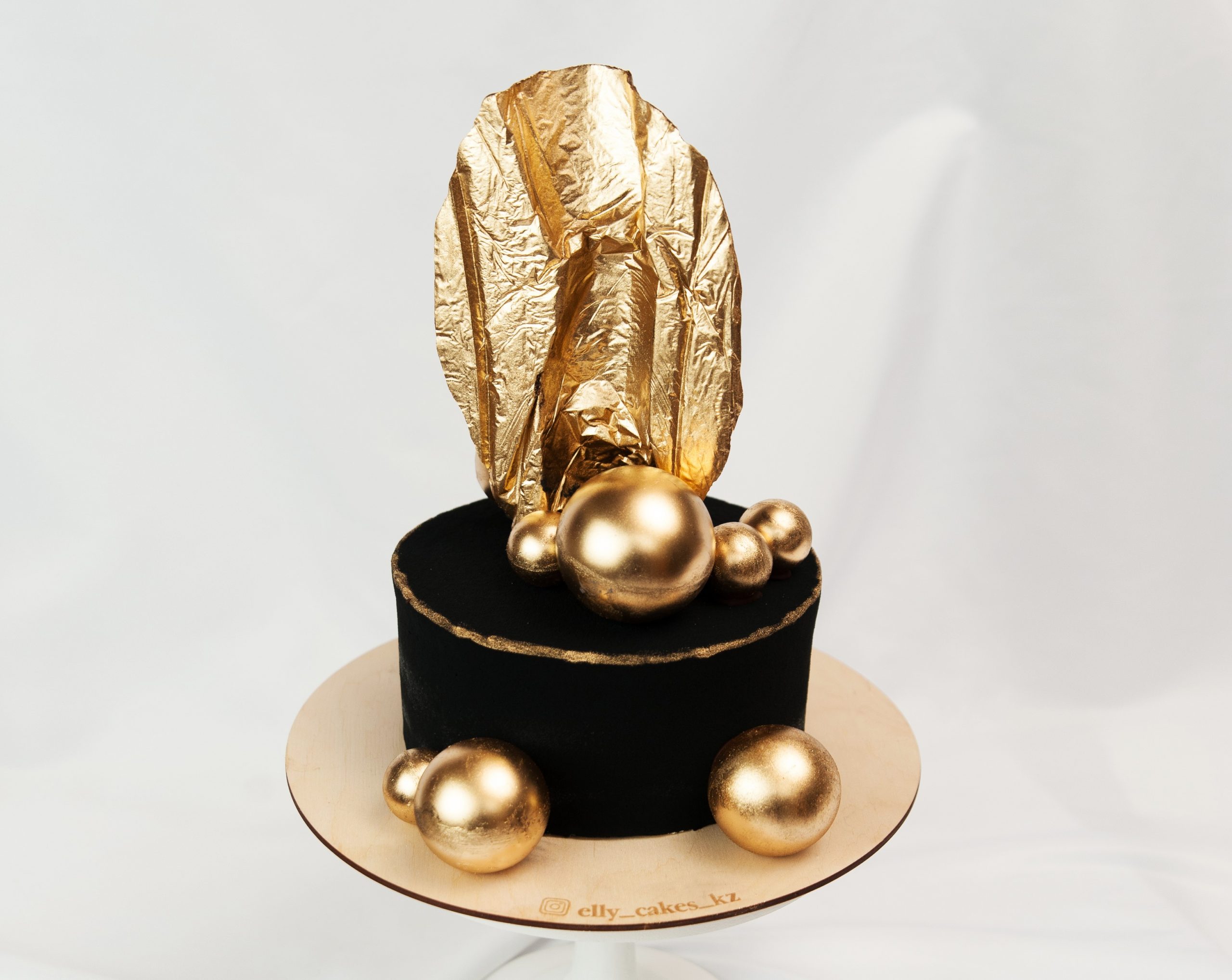 Эффектный торт с серебряным покрытием, шоколадным декором и топером