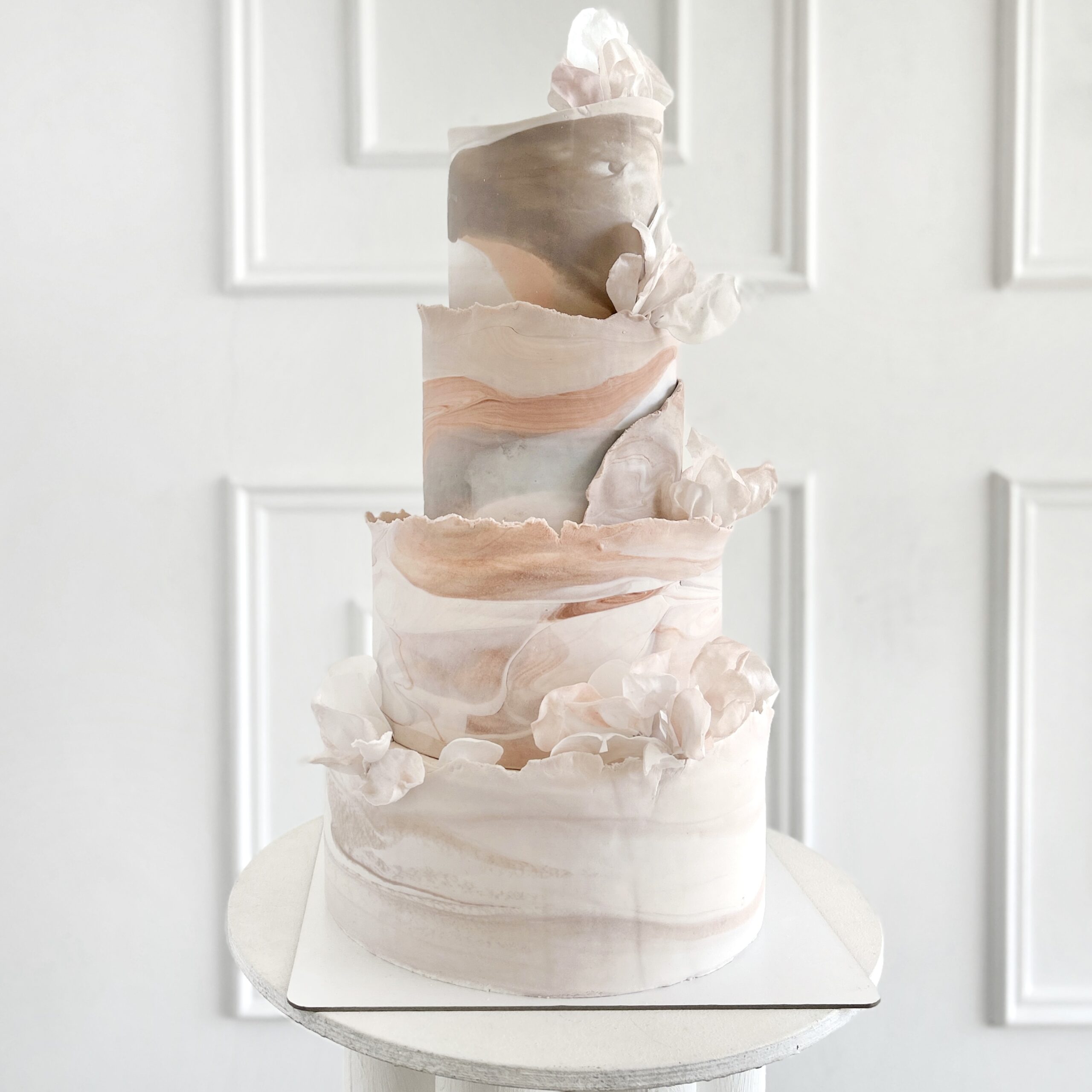 Современный арт-торт в пастельной мраморной гамме - сочетание изысканности, легкости и скульптурной формы.