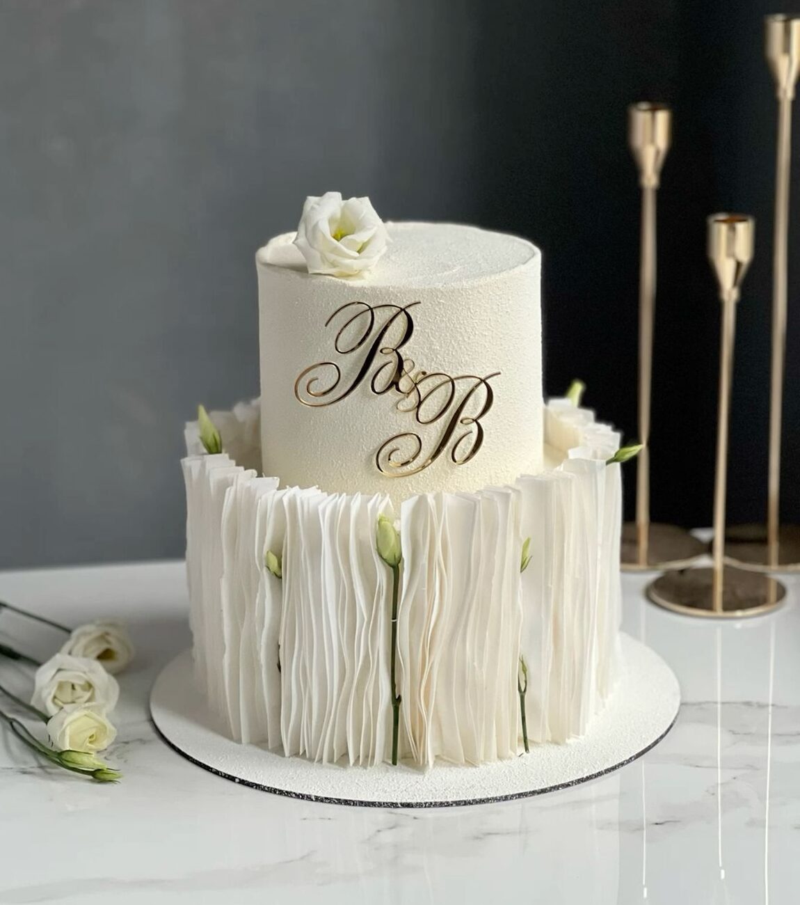 Свадебный муссовый торт в два яруса с украшением из живых цветов