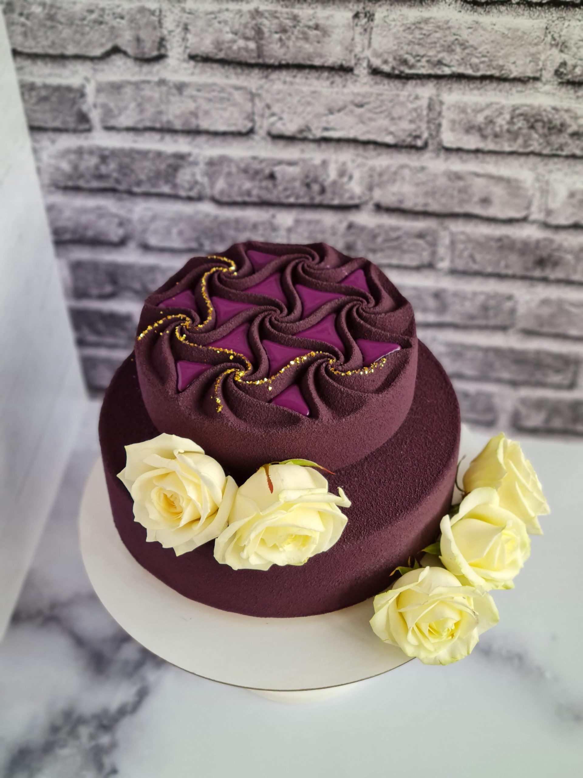 Декор: зеркальная глазурь, золотая шоколадная цифра 40, два шоколадных сердца, шоколадная надпись на торте